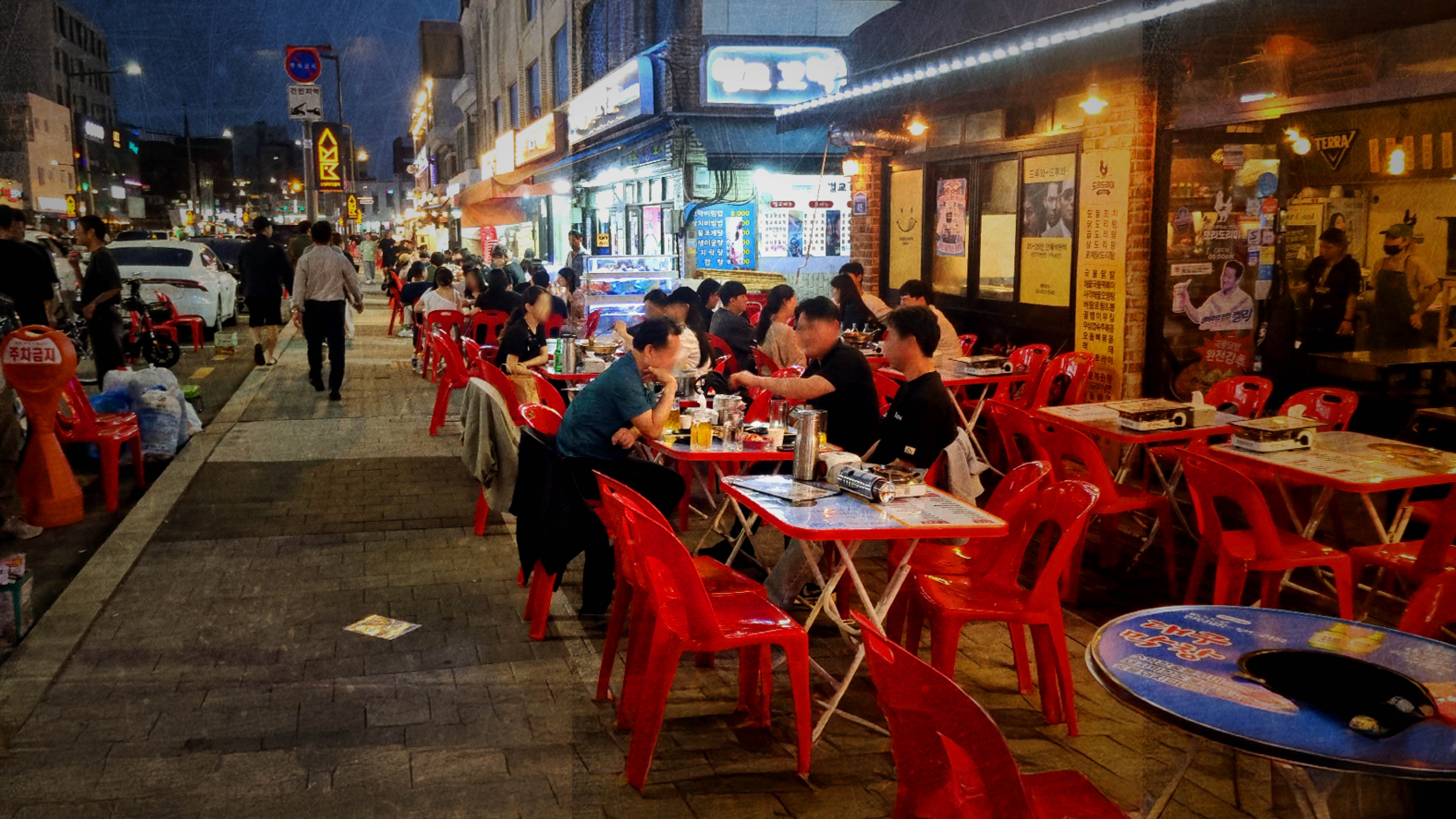 가장 큰 특징은 야장(옥외영업) 특화거리라는 거예요. 오후 5시가 되면 약속이라도 한 듯 골목 양쪽으로 야장이 쭉 펼쳐지고, 어디서 왔는지 모를 사람들이 골목을 가득 채워요.