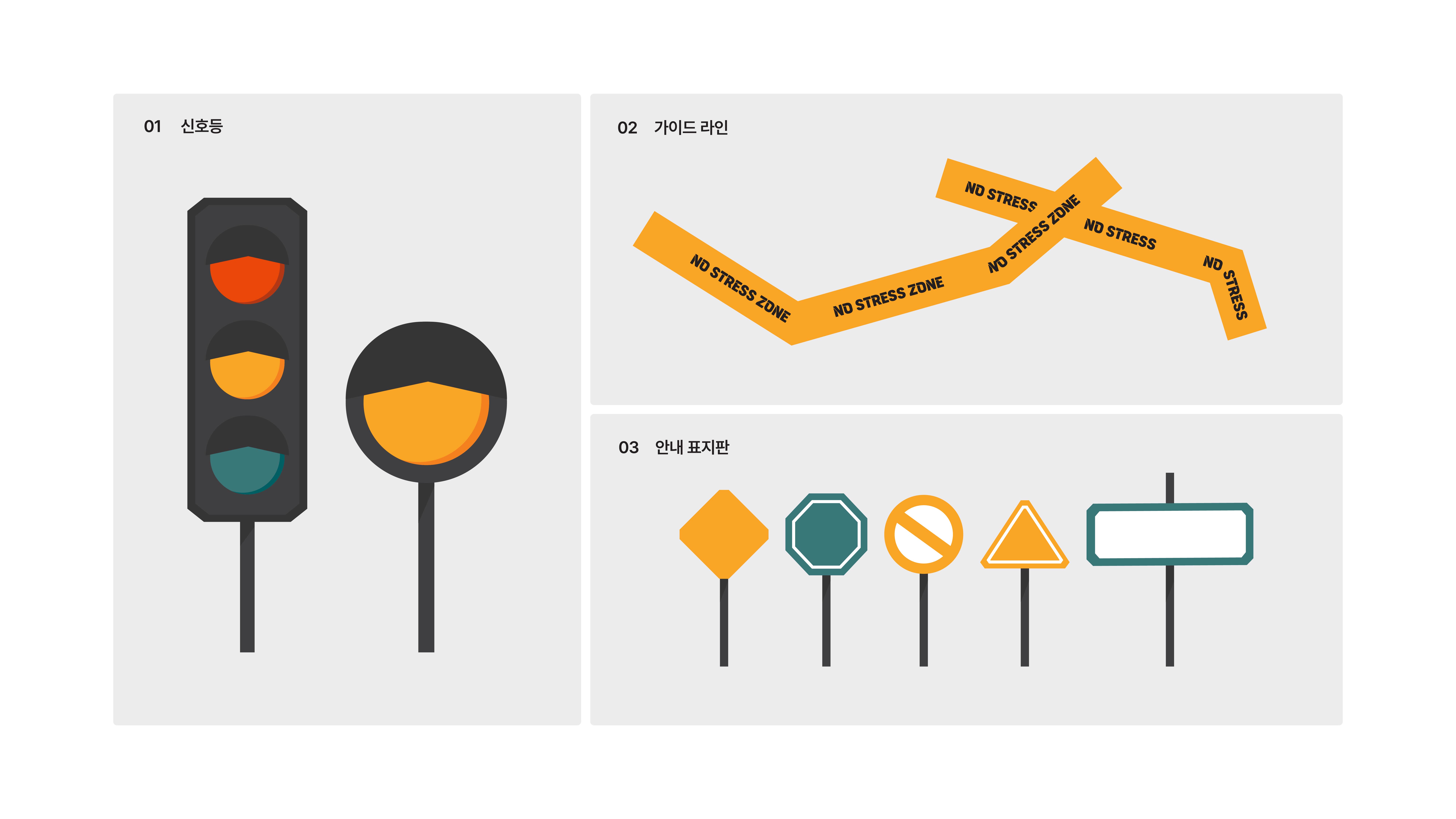 '존(Zone)'을 어떻게 시각적으로 표현할까 고민하던 중, 노란 신호등에서 영감을 받았어요.