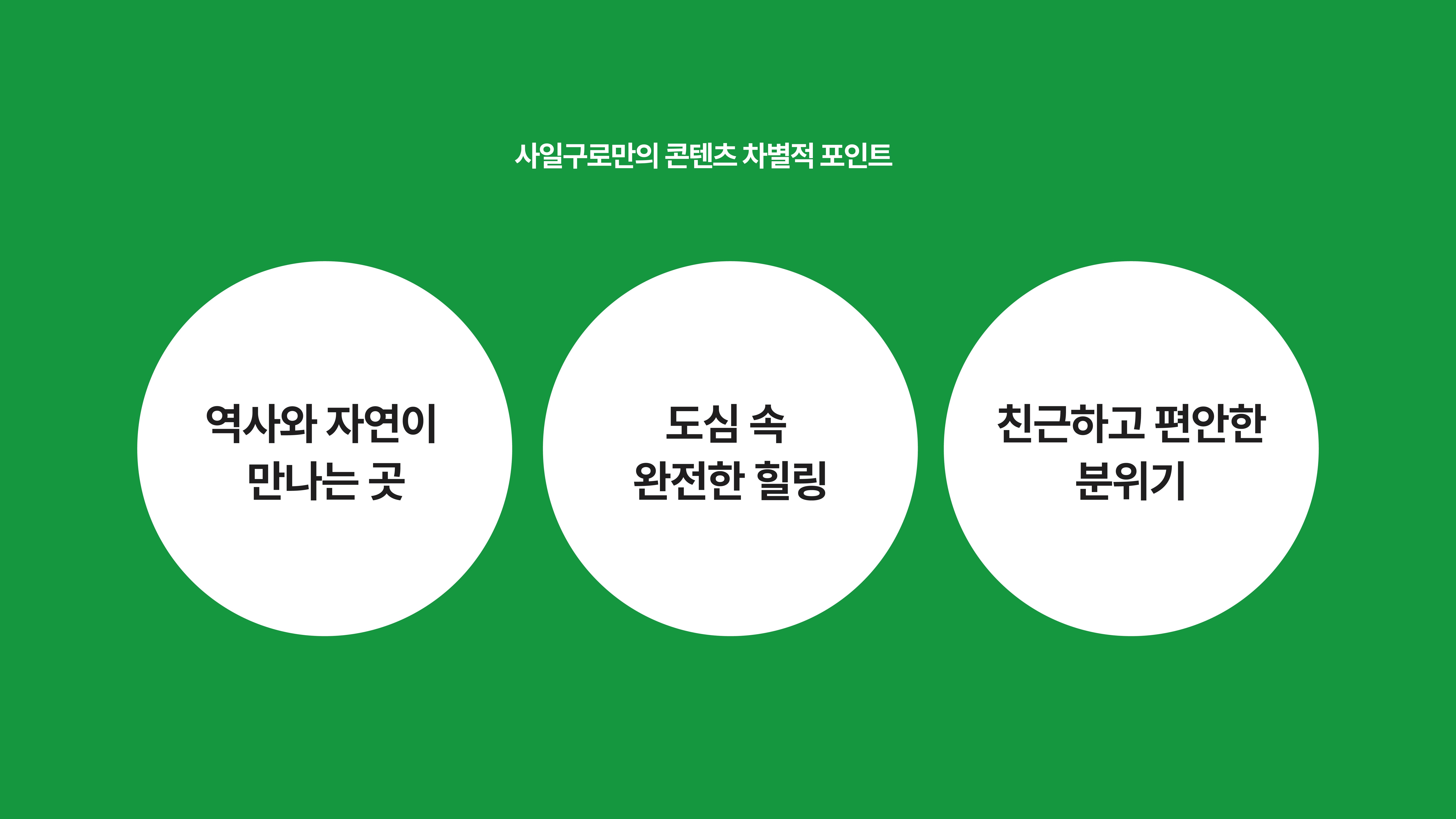 사일구로는 자연, 역사, 공동체라는 너무 많은 자산을 가진 곳이었습니다. 그걸 하나로 응축시켜야 했죠. 브랜드는 영원하지 않아요. 계속 진화해야 하고, 언젠가는 리브랜딩도 필요할 거예요.