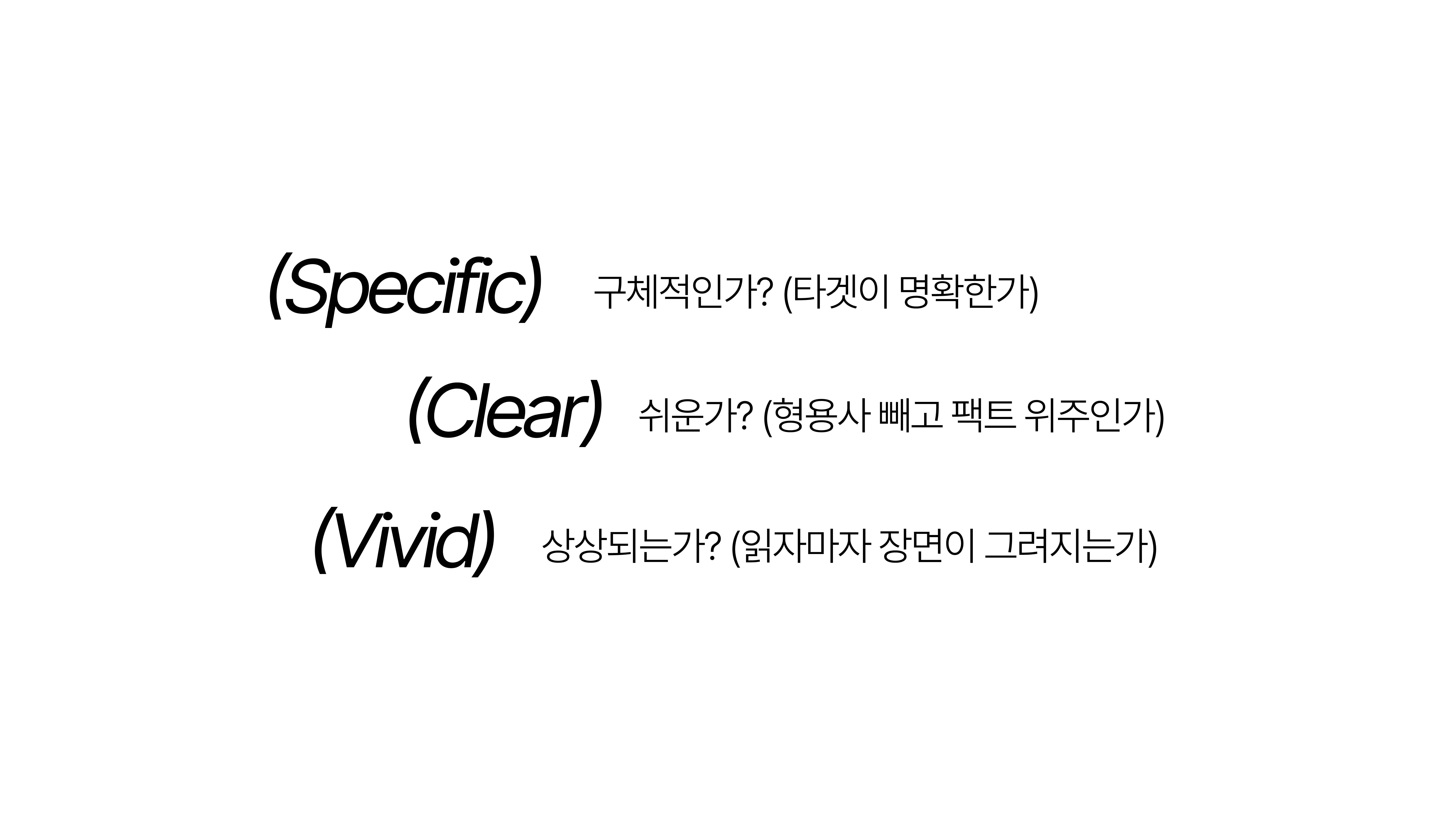 체크리스트: 구체적인가? 명확한가? 상상되는가? 이 세 개를 통과하면 심사위원의 3초를 잡을 수 있어요.