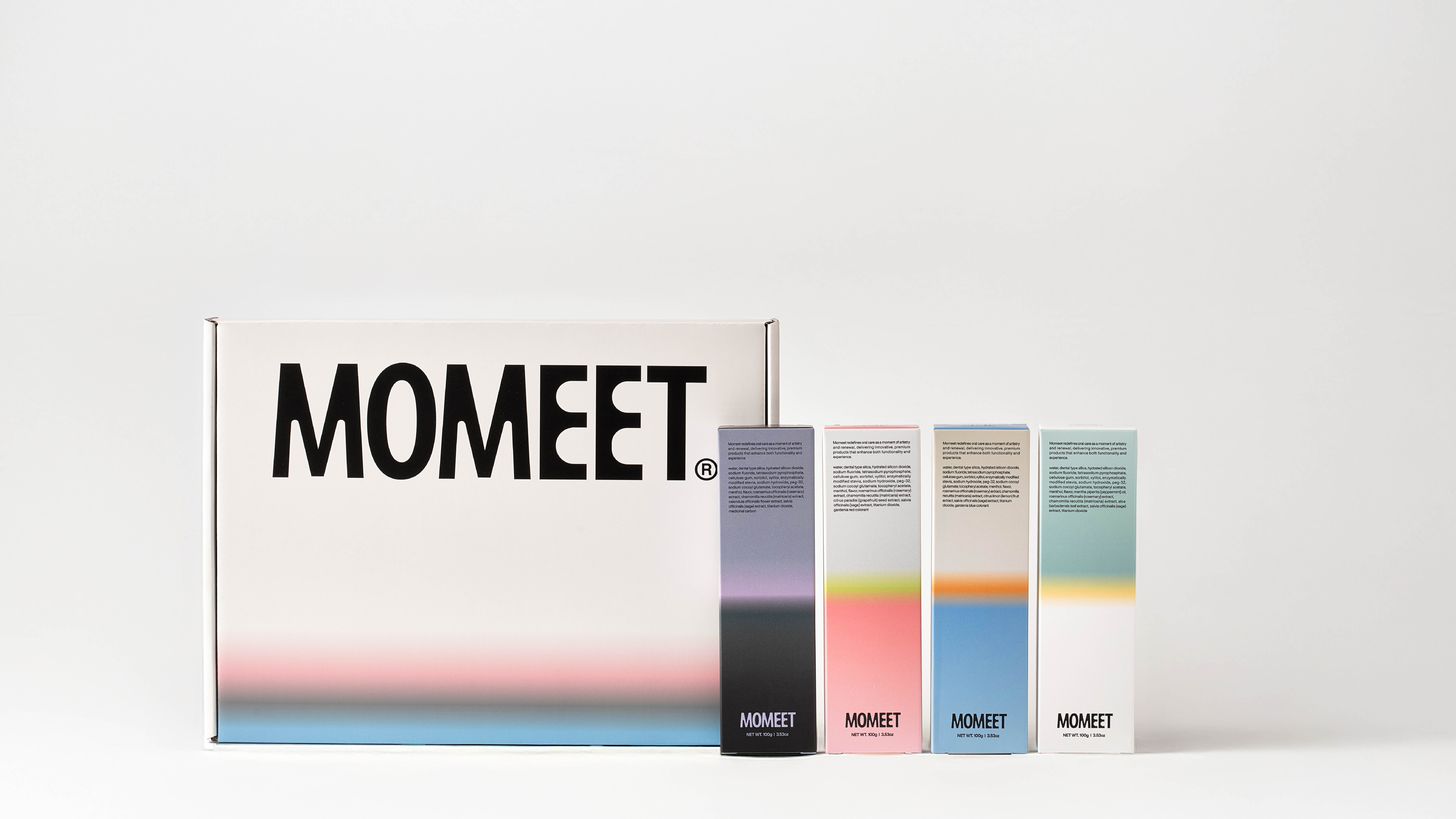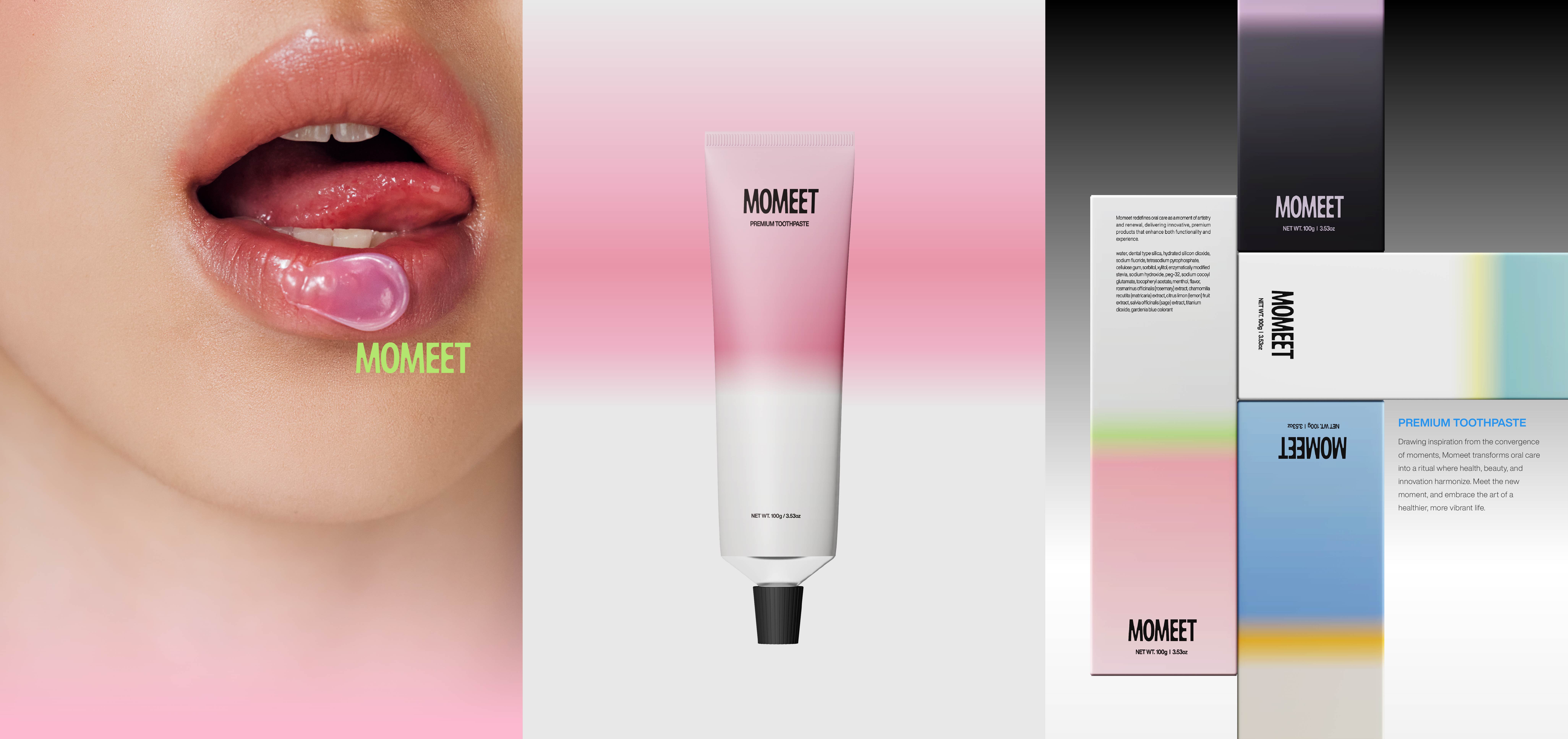 모밋(MOMEET)은 새로운 구강 관리 경험을 제공하는 프리미엄 치약 브랜드예요. 브랜드 이름은 'Moment'와 'Meet'의 합성어예요. 매일 반복되는 루틴이 전에 없던 새로운 순간과 만나는 경험 — 그게 모밋이 그리는 세계예요.