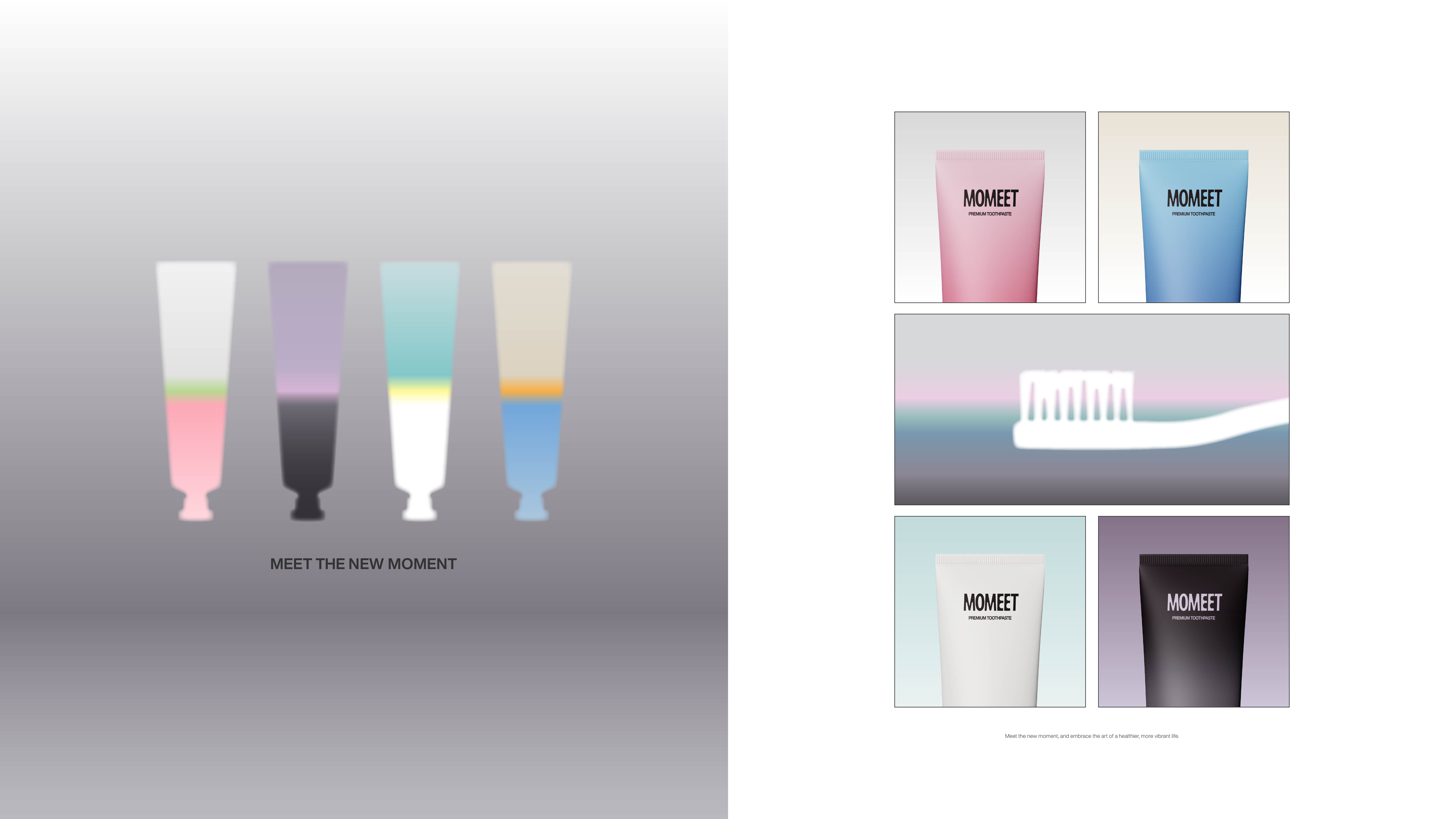 브랜드 전략이 명확해지면 비주얼 방향도 자연스럽게 따라와요. 모밋이 원하는 이미지는 하나였어요. 치약 시장에서 본 적 없는 무드.