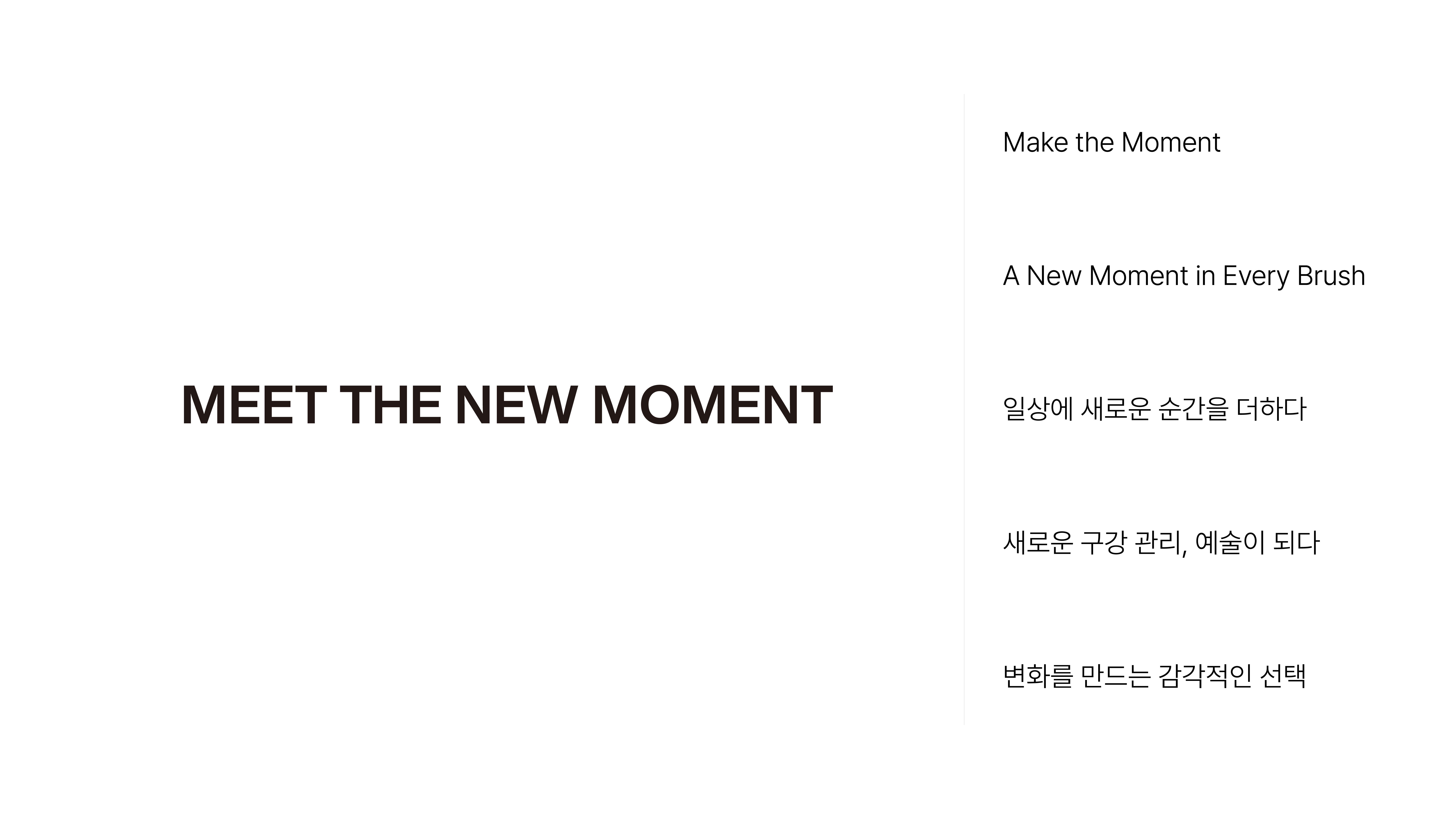 슬로건 "Meet the New Moment"도 바로 거기서 나왔어요. 이를 닦는 지극히 일상적인 순간이, 모밋을 만나 새롭고 특별해진다는 메시지를 담고 있죠.